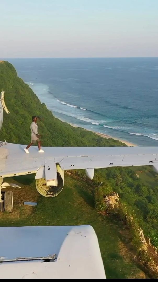 Uçağın kanadında uçurumun ucuna yürümek